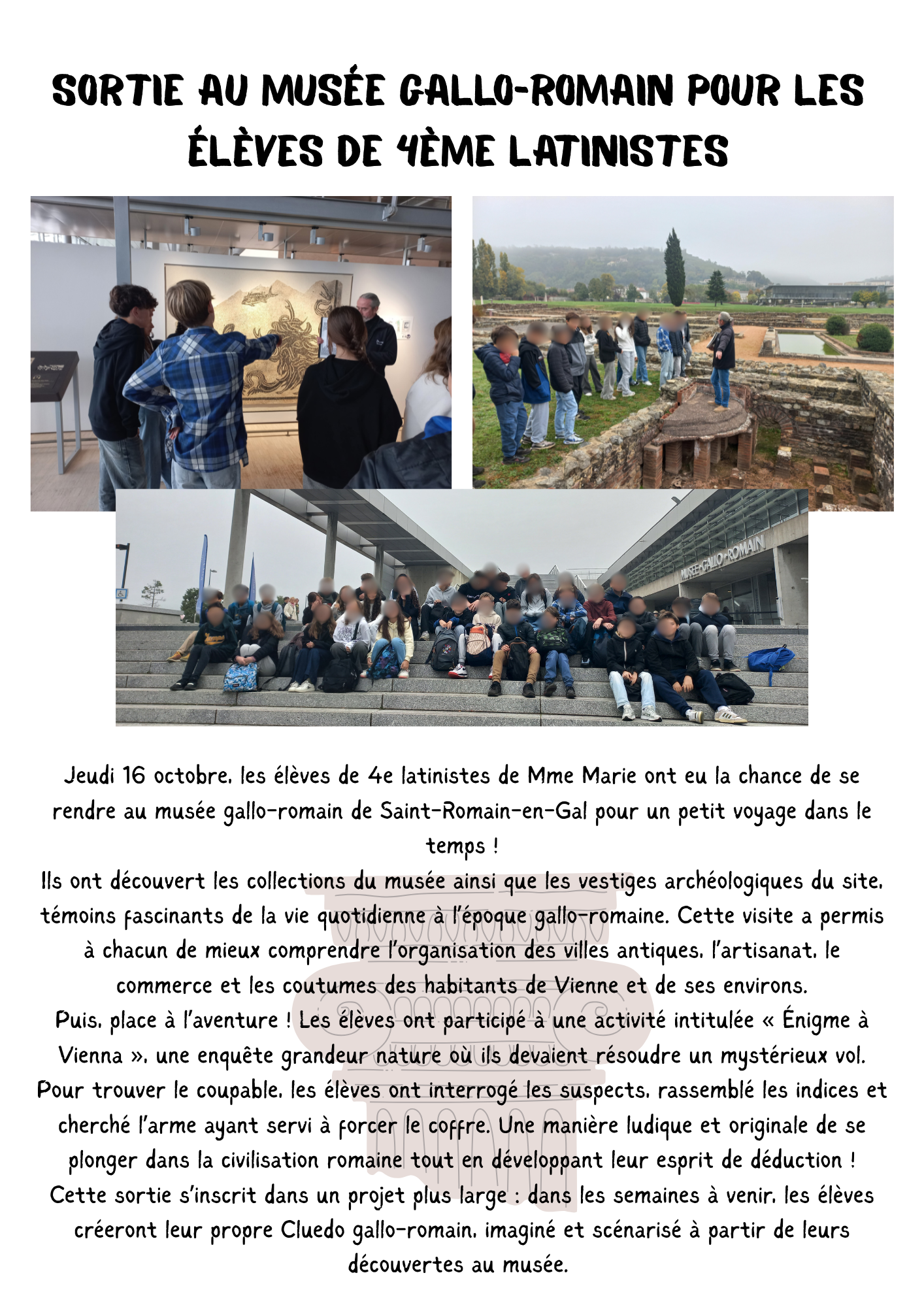 Sortie au musée gallo-romain pour les latinistes 4°.