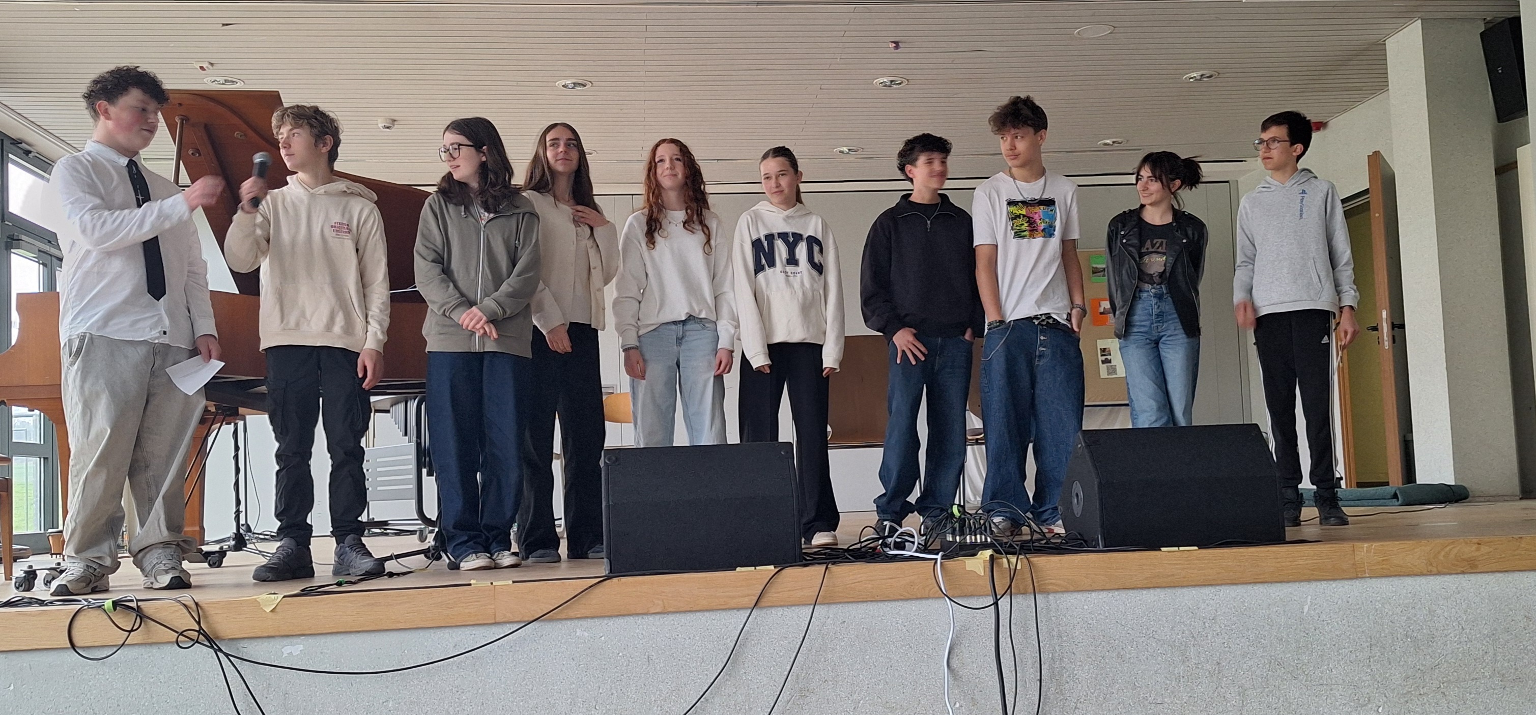 Nos élèves monteront sur scène à cette occasion pour se présenter et lire un texte préparé à l'avance.